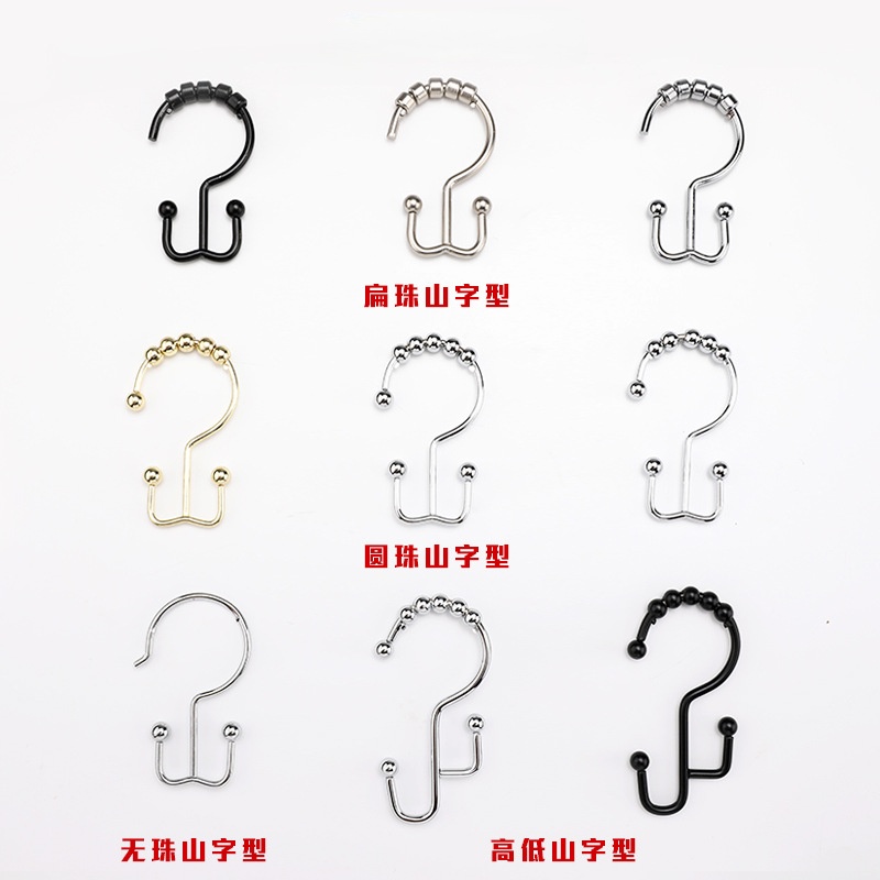 Double Hanging Gliding Metal Beaded Shower Curtain Hooks