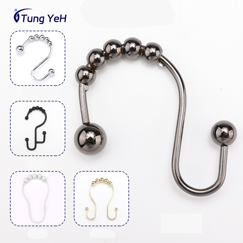 Double Hanging Gliding Metal Beaded Shower Curtain Hooks